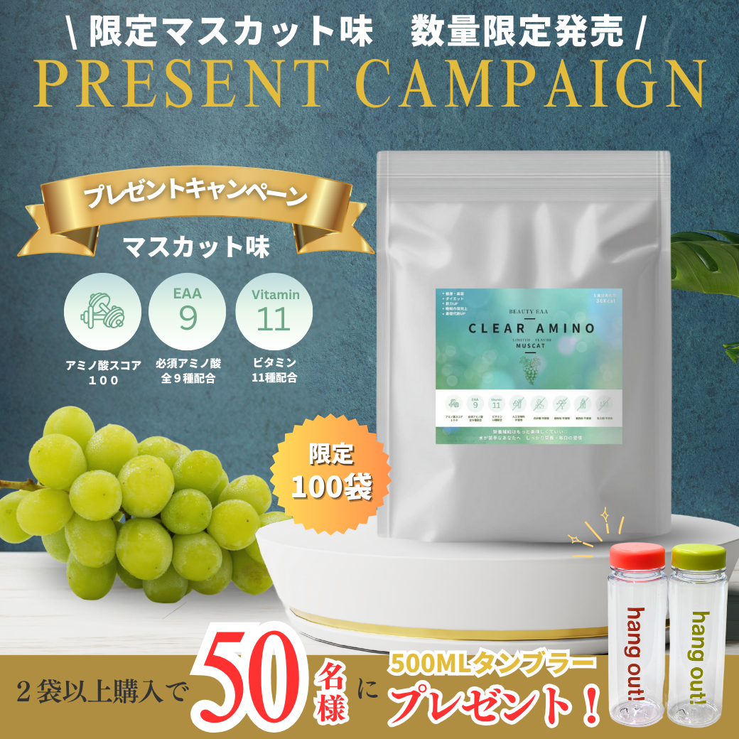 こちらのクリアアミノはスッキリと飲みやすいです 新しく出たマスカット味、ハマります 水より、少し味がついたことで、水分量がグッと増えたのも良かったですが、なんと言っても、アミノ酸の含有量がうれしいです 体が楽になって、肌にも嬉しい効果ありです 手軽に気軽に飲めるから、飽き性の私でも続きそうです